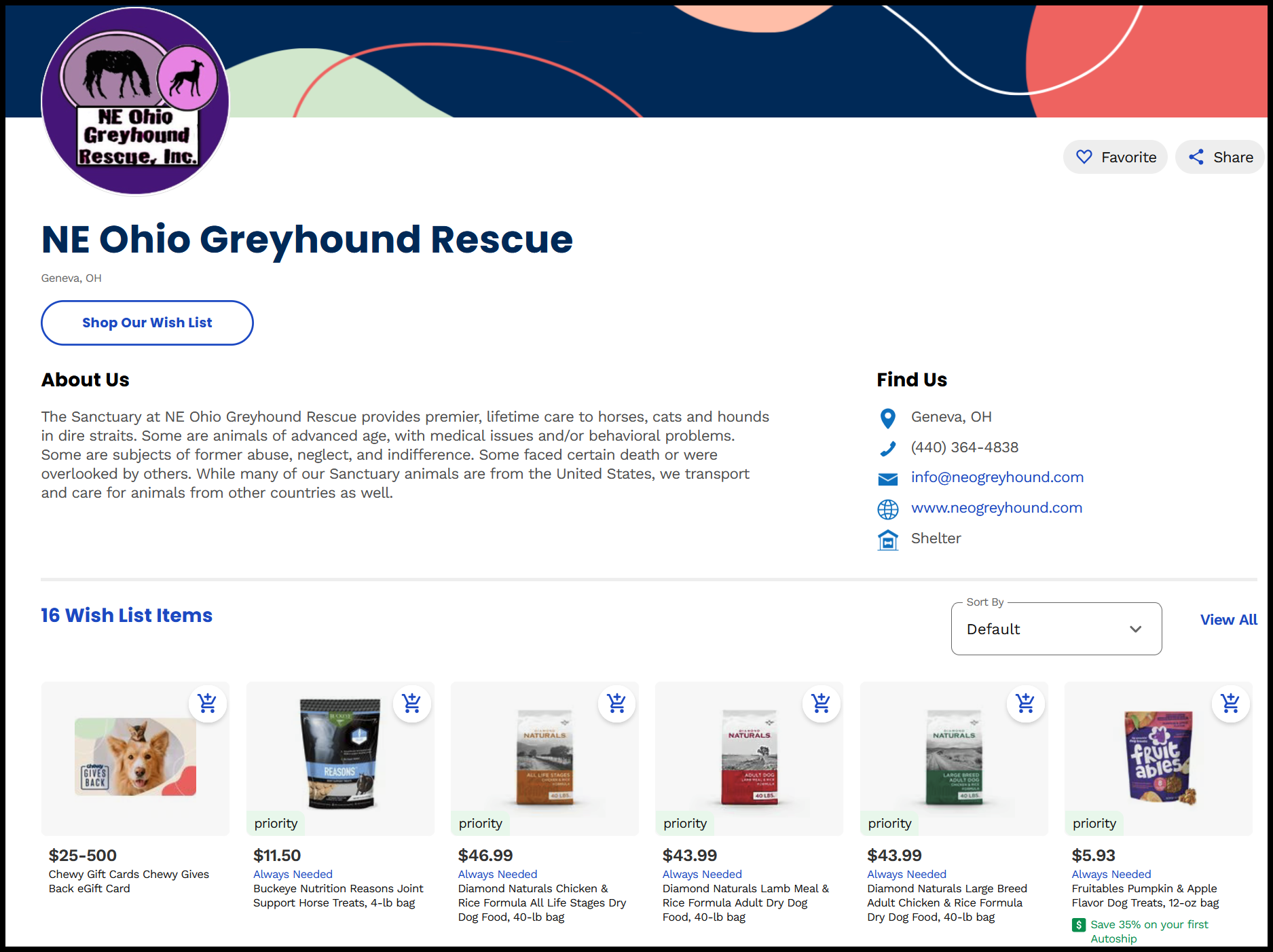 - Make an in-kind donation from our Chewy Wish List or Walmart Registry.